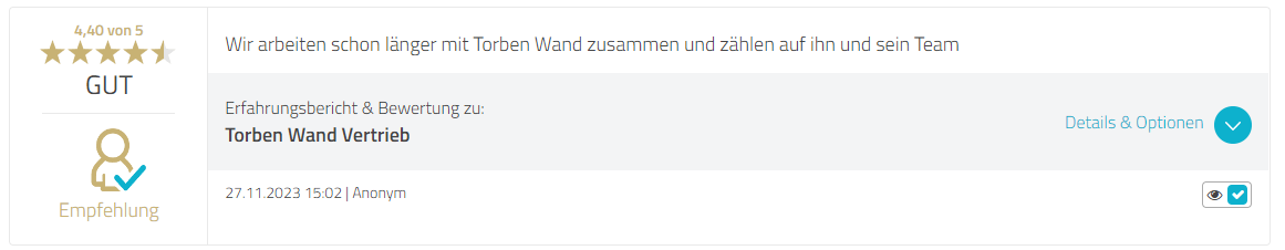 Sie sehen gerade einen Platzhalterinhalt von ProvenExpert.com. Um auf den eigentlichen Inhalt zuzugreifen, klicken Sie auf die Schaltfläche unten. Bitte beachten Sie, dass dabei Daten an Drittanbieter weitergegeben werden.