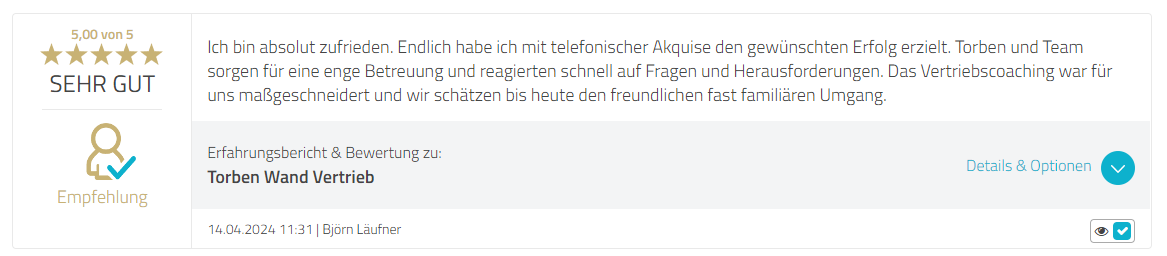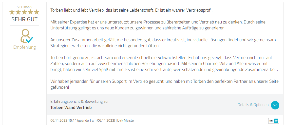 - Vertrieb läuft nur über Empfehlungen? Keine Skalierung möglich.